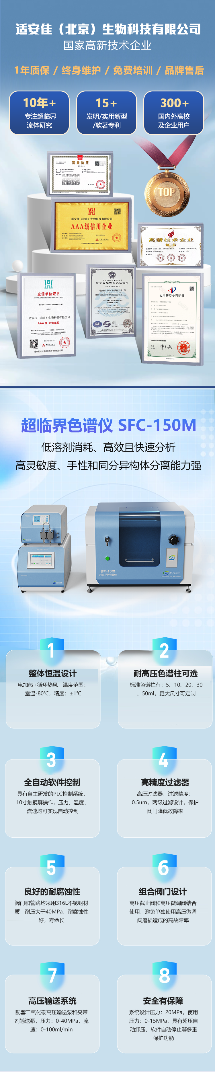 {"樣品池":"316L不銹鋼材質,帶藍寶石視窗和照明","氣路控制":"耐高壓閥門和管路,精確的流量控制,排氣流速≤10ml/min。","溫度控制":"電加熱和內置壓縮機制冷,自動溫控,精度:±1℃。","過濾系統":"內置和外置0.5um精度高壓過濾器。","耐高壓管路":"316L不銹鋼材質,精確設計,耐腐蝕和高壓。","臺式CO2高壓泵":"316L不銹鋼泵頭,藍寶石活塞,流速:0-100ml/min,壓力0 40Mpa ,內置預冷罐為壓縮機制冷,無需冷水機。恒流恒壓模 式可選,觸摸屏操作,壓力
